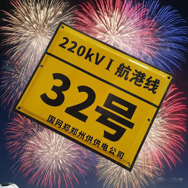 杆号牌制作航港线搪瓷杆号牌,尺寸:40cmX50cm,厚度:1mm,采用铁皮材质,搪瓷工艺,高温烧制而成,版面为黄底黑字黑边框设计,国网电力专业定制