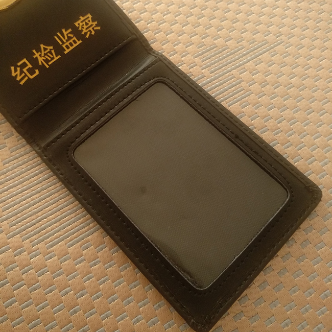 纪检监察工作证皮套,纪检监察证件皮套制作,苍南谊联皮具厂可定做各种工作证证件套,皮套款式多样化,我生产纪检监察工作证皮套,封皮文字标志采用压痕工艺,翻开为党徽标志,纪检监察文字为烫金工艺,皮套都是用二层牛皮制做,欢迎有需要的朋友来电咨询订购。