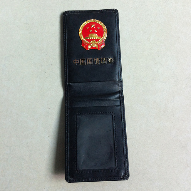 真皮工作证皮套定做调查员证卡套制作,调查员证采二层牛皮材质竖版制作,尺寸:7.5cmX10.5cm,翻盖尺寸:7.5cm*21cm,封面文字和国标采用压痕工艺,翻开双卡位上带有金属徽章和中国国情调查铜色字,卡槽大小标准适合放身份证银行卡等证件。