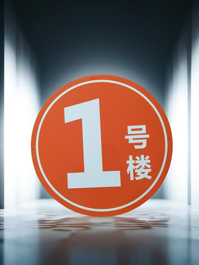 楼栋牌制作厂房外墙幢号牌圆形楼层号码牌,采用铝板材质烤漆印刷工艺制作,厚度可定制0.5-3毫米,尺寸大小都可定制,常规尺寸直径:20cm、30cm、40cm、60cm、80cm、100cm、120cm、150cm等,安装方式:1、打孔安装,2、背胶安装。