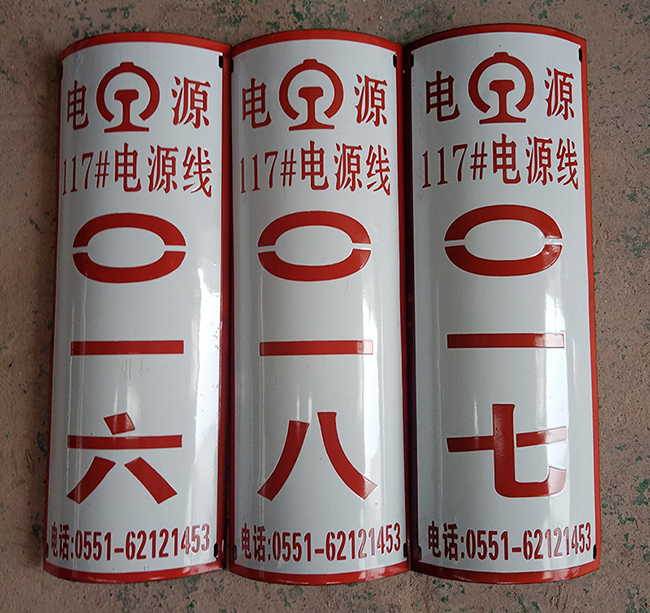 搪瓷标牌定制高铁杆号牌高压线杆号牌,杆号牌采用搪瓷工艺制作,尺寸:22.5cm*45cm,厚度:1mm,高温炼制孤形制作,适合户外使用。